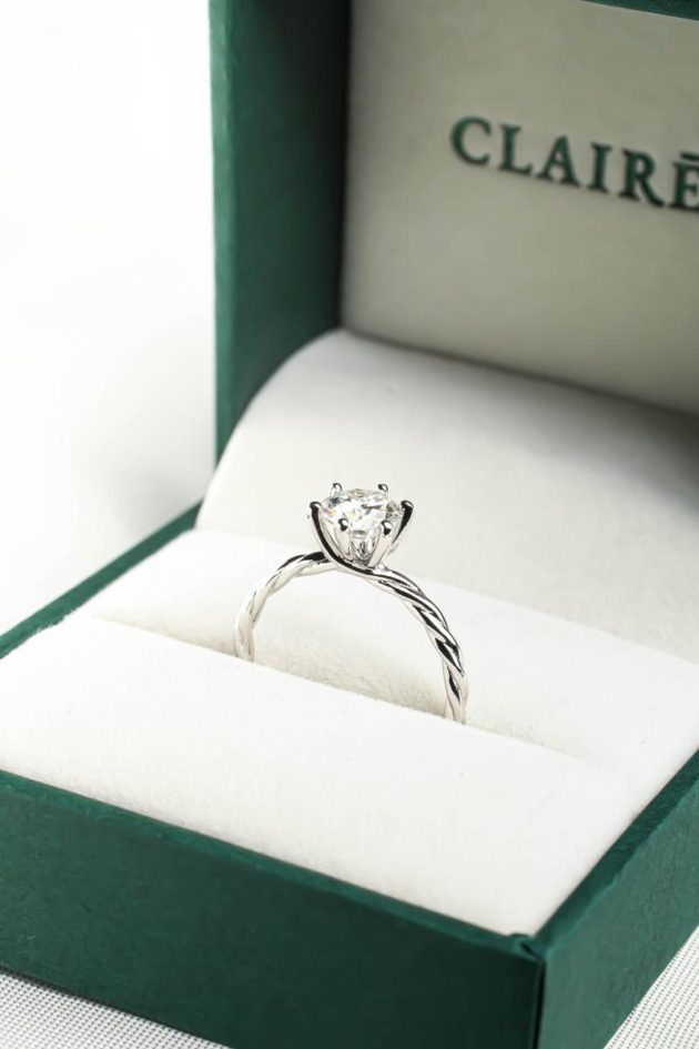 The Leon Solitaire Ring is a timeless piece that exudes luxury and sophistication. Featuring a stunning moissanite at its center, this ring will add elegance to any ensemble. The twisted band creates the perfect balance of texture and sparkle, making it the ideal go-to accessory for both formal and casual occasions.