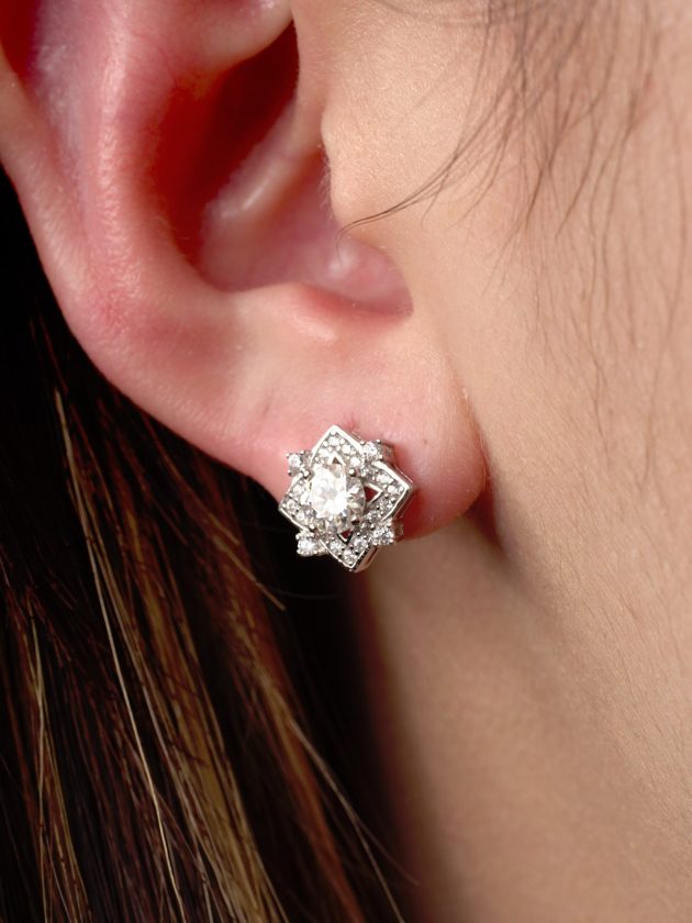 Introducing the Stellar Diamond Earrings, a gorgeous and sophisticated pair of earrings that are sure to leave a lasting impression. These earrings feature a stunning snowflake-inspired design that is sure to capture attention and draw admiration.